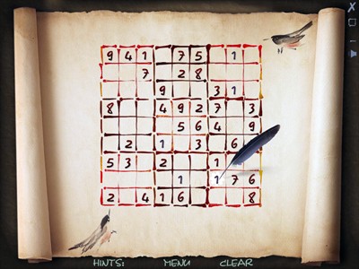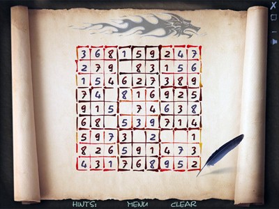 Sudoku là một thể loại trò chơi giải đố (puzzle) nổi tiếng có nguồn gốc từ Nhật Bản. Trò chơi này sở hữu giao diện mang đậm nét nghệ thuật truyền thống của xứ sở hoa anh đào, cung cấp ba mức độ khó khác nhau, đồng thời có khả năng lưu lại và tiếp tục các ván chơi chưa hoàn thành.