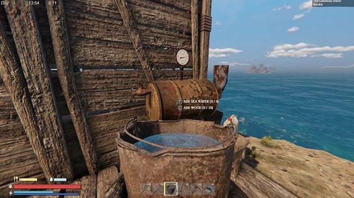 Việc uống trực tiếp nước biển là không thể đối với nhân vật trong game, do đó, việc lọc nước là một bước không thể thiếu để duy trì sự sống.