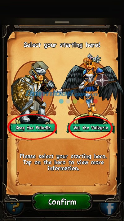 Người chơi khởi đầu bằng việc chọn một trong hai nhân vật miễn phí được game cung cấp: Greg - một hiệp sĩ dũng cảm, hoặc Val - một tiểu nữ thần xinh đẹp nhưng sở hữu phép thuật mạnh mẽ.