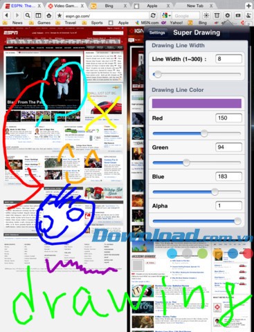 - Vẽ trực tiếp lên bất kỳ trang web nào bằng ngón tay, dễ dàng chuyển đổi giữa các thẻ tab (kể cả khi sử dụng chế độ tách màn hình).