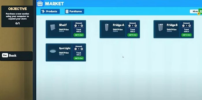May mắn thay, Supermarket Simulator hỗ trợ người chơi trong việc định giá bằng cách hiển thị giá thị trường của từng mặt hàng khi di chuột qua chúng.