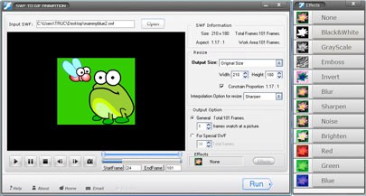 Với SWF to GIF Animation, bạn hoàn toàn có thể chuyển đổi các file Flash (.SWF) sống động thành các ảnh .GIF động, hoặc các định dạng ảnh tĩnh như .JPG, .BMP,… một cách dễ dàng.