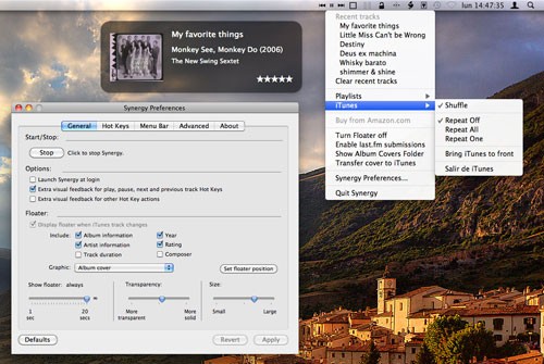 Synergy là một ứng dụng được phát triển trên nền tảng Cocoa, dành riêng cho hệ điều hành Mac OS X. Ứng dụng này mang đến khả năng tùy biến thanh menu bằng cách tích hợp ba nút điều khiển cơ bản của iTunes: tua bài trước, tua bài tiếp theo và nút chơi/tạm dừng.