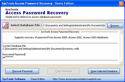 - Khả năng hỗ trợ khôi phục mật khẩu cho các file cơ sở dữ liệu MS Access với định dạng *.MDB.