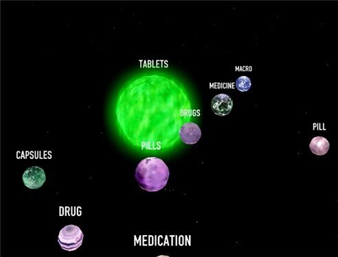 Quá trình tìm kiếm bắt đầu khi người dùng nhập một từ khóa liên quan đến chủ đề mong muốn. Ngay lập tức, các thẻ liên quan sẽ xuất hiện, được hiển thị trên các hành tinh ảo này.