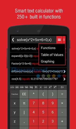 - Hơn 250 công thức toán được tích hợp sẵn.