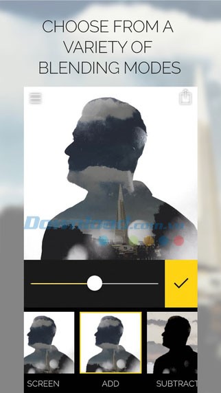 Tiếp theo, hãy vuốt để xem trước các chế độ hòa trộn khác nhau và chọn chế độ phù hợp nhất với hình ảnh bạn mong muốn. Việc này sẽ giúp tạo ra hiệu ứng độc đáo cho shot hình.