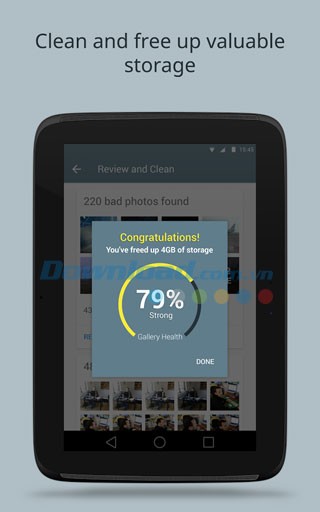 Bạn có thể sử dụng ứng dụng hàng tuần hoặc hàng ngày tùy theo nhu cầu. Gallery Doctor sẽ thông báo cho bạn nếu phát hiện những bức ảnh kém chất lượng, giúp bạn luôn giữ điện thoại “sạch” và bộ nhớ được giải phóng, đồng thời tăng tốc độ và hiệu suất của thiết bị.