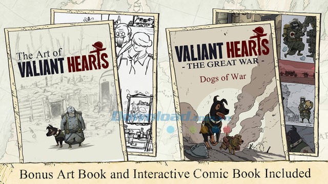 - Valiant Hearts: The Great War không chỉ là một trò chơi, mà còn đi kèm với các ấn phẩm sách và truyện tranh tương tác, được cung cấp hoàn toàn miễn phí và lấy nguồn cảm hứng trực tiếp từ thế giới trong game.