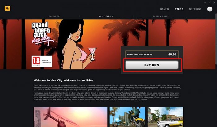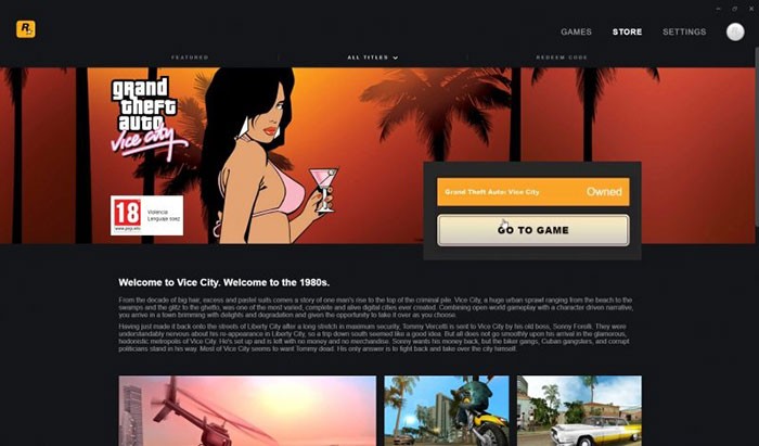 Rockstar Games cung cấp trình khởi chạy trò chơi riêng của họ, nơi bạn có thể mua và tải các trò chơi của Rockstar, bao gồm cả GTA Vice City.