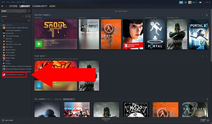 3. Tìm kiếm Grand Theft Auto: Vice City trong thư viện trò chơi của bạn.