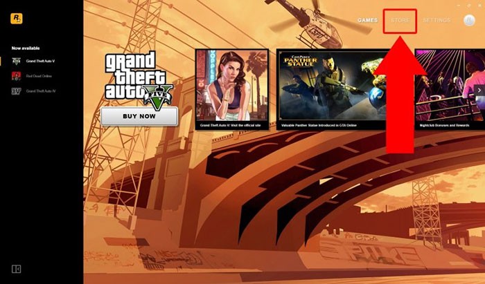 Bước 1: Từ giao diện chính của Rockstar, hãy chọn Store để tìm kiếm GTA Vice City.