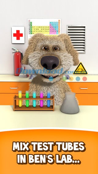 Với nền tảng là một giáo sư hóa học, Ben sẽ đặc biệt hứng thú khi được trở lại phòng thí nghiệm của mình. Lúc này, chú sẽ phản ứng một cách đầy nhiệt tình như một đứa trẻ nhận được món quà yêu thích. Tại đây, bạn có thể tiến hành các thí nghiệm hóa học bằng cách pha trộn hai ống nghiệm bất kỳ và quan sát phản ứng hóa học xảy ra?