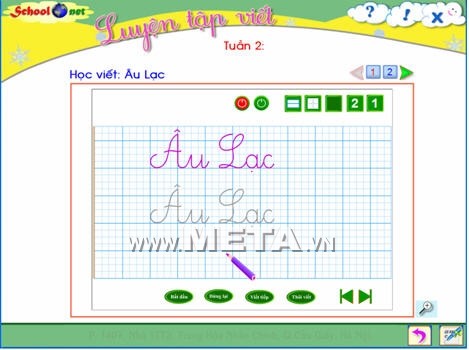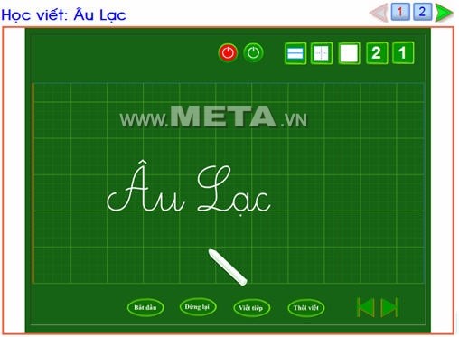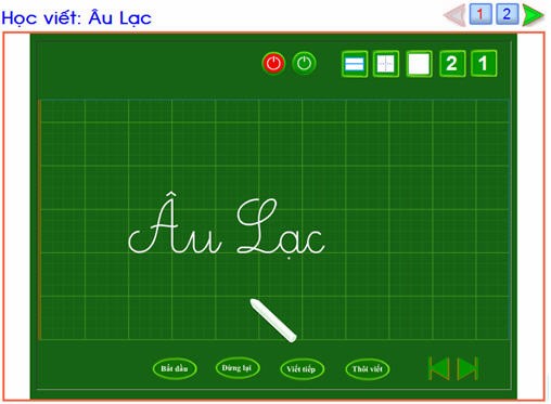 Ví dụ, màn hình sau thể hiện khung lưới nền xanh cho bài mô phỏng tập viết chữ này.