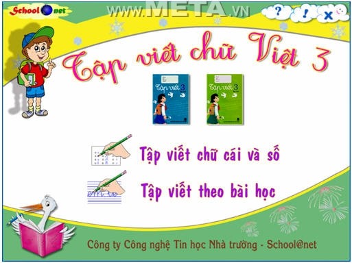 Phần mềm này mô phỏng cách viết bảng chữ cái tiếng Việt (29 chữ cái) và các chữ số từ 0 đến 9. Bên cạnh đó, phần mềm còn hỗ trợ luyện tập các mẫu chữ, từ và đoạn văn bản theo chương trình sách giáo khoa lớp 3, đồng thời cho phép in bài tập ra giấy.