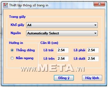 Phần mềm cho phép bạn điều chỉnh khổ giấy, nguồn giấy, hướng in (dọc hoặc ngang) và lề trang trong cửa sổ in. Sau khi hoàn tất các thiết lập, hãy nhấn Đồng ý để bắt đầu in.