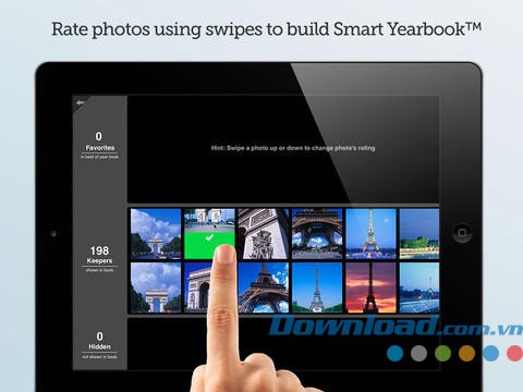 - Tương tác với sách ảnh bằng các cử chỉ đơn giản: không cần chuột hay bàn phím. Lật trang tự nhiên và xếp hạng ảnh nhanh chóng bằng cách vuốt ảnh lên hoặc xuống.