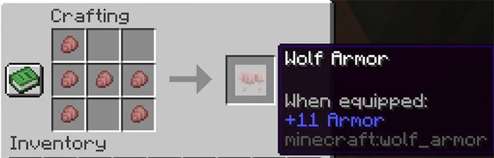 Trong Minecraft, chó sói hiện tại có khả năng được trang bị áo giáp, giúp giảm thiểu sát thương mà chúng phải chịu. Áo giáp này sẽ hấp thụ toàn bộ sát thương cho đến khi bị phá hủy hoàn toàn.