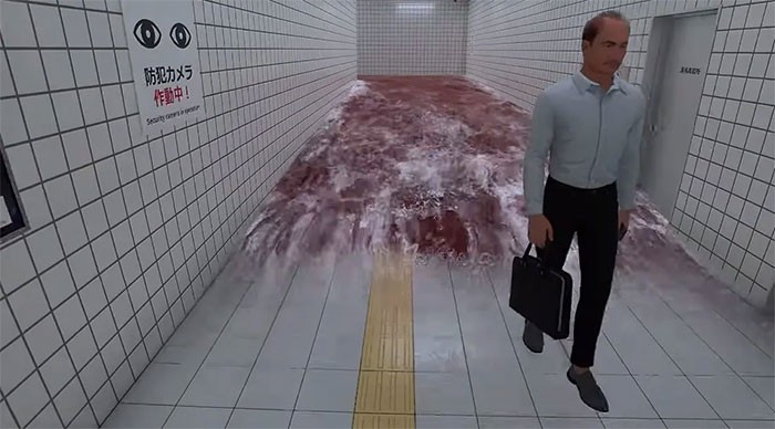 Một làn sóng nước màu đỏ, hoặc có thể là máu, sẽ bắt đầu tràn ra khắp góc và đuổi theo người chơi suốt hành lang. Nếu không phản ứng đủ nhanh, nó sẽ gây mất tập trung và trò chơi kết thúc.