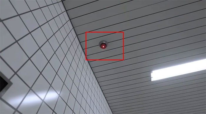 Camera an ninh này nằm ở giữa hành lang và thường có màu đen.