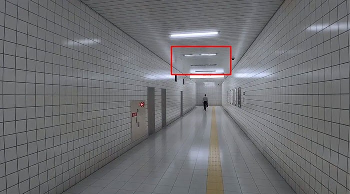 Một điểm dễ nhận biết khác là phần lớn các đèn trần dọc hành lang đều bị lệch khỏi vị trí thông thường.