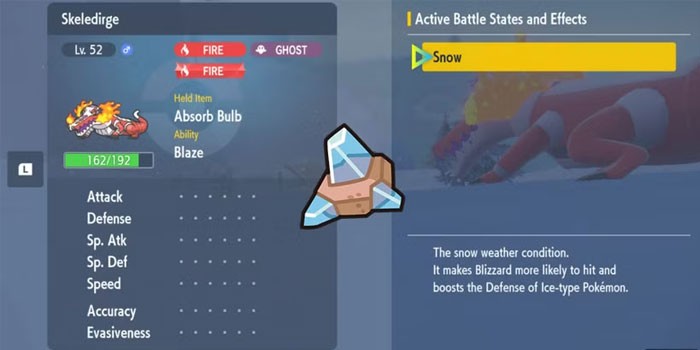 - Pokémon có Snow Cloak tăng khả năng né tránh.