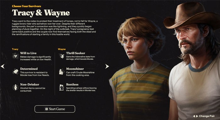 Mỗi cặp nhân vật trong Into the Dead: Our Darkest Days đều mang đến một sự cân bằng độc đáo giữa kỹ năng, điểm yếu và cả những cảm xúc phức tạp. Đôi khi, họ mang đến cho người chơi nhiều hơn những con số thống kê: có thể là nguồn cung cấp thức ăn, có thể là những tổn thương tinh thần, và đôi khi là cả những bình rượu moonshine tự nấu.