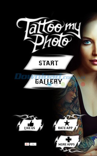 Cách sử dụng Tattoo my Photo cũng rất dễ dàng. Sau khi tải và khởi chạy ứng dụng, bạn chỉ cần nhấn "Start" để bắt đầu. Bạn có thể chọn ảnh từ thư viện ảnh hoặc chụp ảnh mới. Sau khi có ảnh ưng ý, hãy chọn hình xăm yêu thích từ các chủ đề khác nhau.