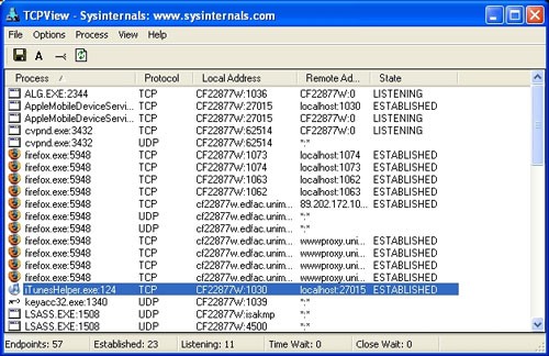 Trên các hệ điều hành Windows Server 2008, Vista và XP, TCPView còn hiển thị tên của tiến trình đang sở hữu các endpoint này. Điều này giúp người dùng dễ dàng xác định ứng dụng nào đang sử dụng kết nối mạng.