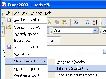 Tiếp theo, vào File > Classroom test > Take test (student)… để kiểm tra bố cục và giao diện bài thi.