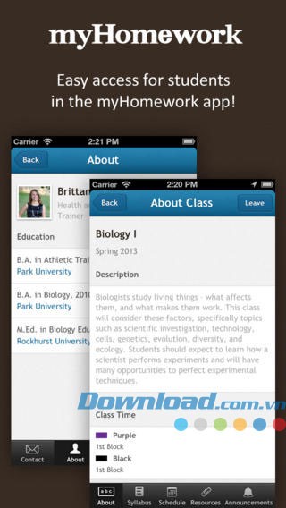 Hàng triệu học sinh, sinh viên đã tải ứng dụng myHomework Student Planner for iOS miễn phí để theo dõi tiến độ học tập của mình trên điện thoại thông minh và máy tính bảng iDevice. Khi thông tin lớp học được đăng tải lên Teachers.io, học sinh có thể tiếp cận nhanh chóng với đề cương bài giảng, danh sách chủ đề bài luận, thông báo và tài liệu khóa học ngay trong ứng dụng myHomework.