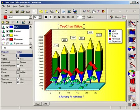 TeeChart Office là một phần mềm chuyên dụng, cung cấp khả năng tạo ra các biểu đồ đa dạng, bao gồm cả biểu đồ 3D và nhiều kiểu dáng khác nhau. Bạn có thể tự do lựa chọn các loại biểu đồ phù hợp với nhu cầu của mình.