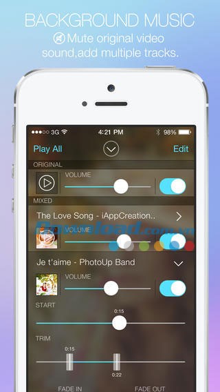 - Thêm nhạc nền từ thư viện nhạc có sẵn trên thiết bị.