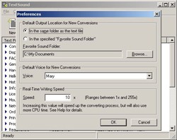 - Làm sao để hiệu chỉnh giọng đọc và nơi lưu file audio trong TextSound? Truy cập menu Option > Preferences, bạn sẽ tìm thấy mục Favorite Sound Folder để chọn vị trí lưu file audio, và mục Voice để lựa chọn giọng đọc nam hoặc nữ.
