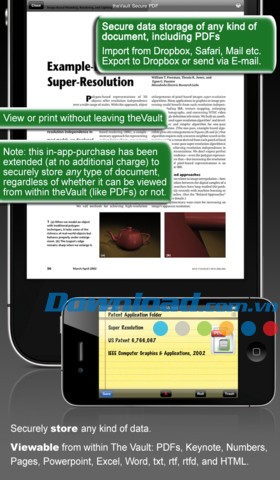 Phiên bản trả phí mở rộng khả năng lưu trữ, cho phép bạn bảo mật các loại tài liệu khác nhau được gửi qua email, trình duyệt Safari, Dropbox hoặc iTunes.
