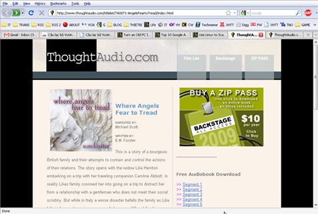 Mỗi tác phẩm đều được Thoughtaudio giới thiệu tóm tắt về nội dung, cốt truyện, cùng với thông tin về tác giả để bạn có thêm thông tin tham khảo. Quan trọng hơn, trang web cung cấp đầy đủ các đường link download (ở mục "Free Audiobook Download") để bạn dễ dàng tải về.