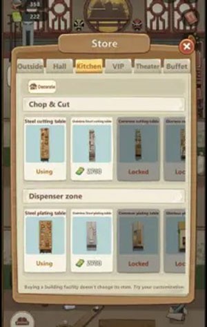 Sau khi đã chú trọng đến đội ngũ nhân viên, việc mở rộng quy mô nhà hàng là bước tiếp theo cần được thực hiện. Hãy nhấp vào biểu tượng Cửa hàng, thường nằm ở góc dưới cùng bên trái màn hình, để lựa chọn và mua sắm nội thất mới, đồng thời nâng cấp những khu vực ăn uống hiện có.