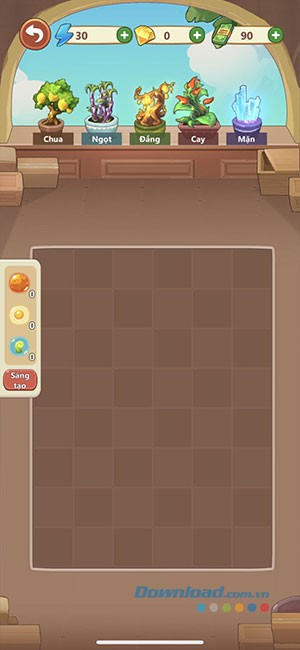 Để khởi đầu, hãy chạm vào bất kỳ loại cây nào ở phần đầu màn hình. Có tổng cộng năm hương vị khác nhau: Chua, Ngọt, Đắng, Cay và Mặn.