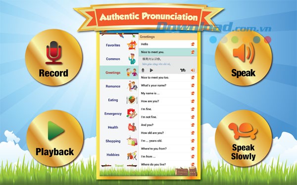 Ứng dụng cung cấp một kho tàng các cụm từ và từ vựng được sử dụng phổ biến trong giao tiếp hàng ngày.