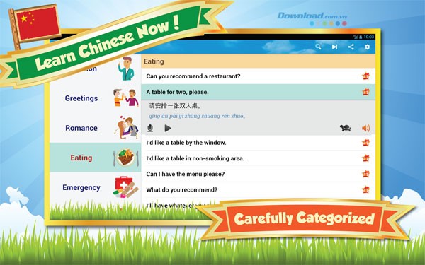 Học tiếng Trung 10.0 cung cấp một kho tàng hơn 800 cụm từ và từ vựng tiếng Trung thông dụng, được thiết kế đặc biệt cho những người mới làm quen với ngôn ngữ này cũng như những ai có nhu cầu sử dụng tiếng Trung trong các chuyến du lịch.