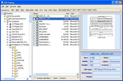 Tiff Paging cung cấp khả năng chia tách một file TIFF nhiều trang thành các file riêng lẻ. Đồng thời, phần mềm còn hỗ trợ việc hợp nhất nhiều file TIFF thành một file duy nhất.