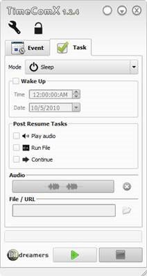 Sau khi hoàn tất thiết lập điều kiện thực hiện tác vụ, bạn chọn tác vụ cần thực hiện tại thẻ Task. Các tác vụ mà chương trình cung cấp bao gồm: Lock Computer (khóa máy tính), Shutdown (tắt máy tính), Sleep (cho máy tính ở trạng thái nghỉ), Hibernate (đặt máy tính vào trạng thái ngủ đông), Log Off (đưa máy tính về màn hình đăng nhập), Turn Off Display (tắt màn hình), Run File / Open URL (mở một tập tin hoặc trang web, lúc này bạn nhấn vào biểu tượng để chọn tập tin hoặc nhập địa chỉ web trực tiếp vào ô File / URL).
