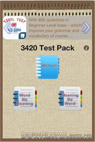 Xem thêm: TOEIC Vocabulary Test Pack - Luyện thi TOEIC trên iPhone .