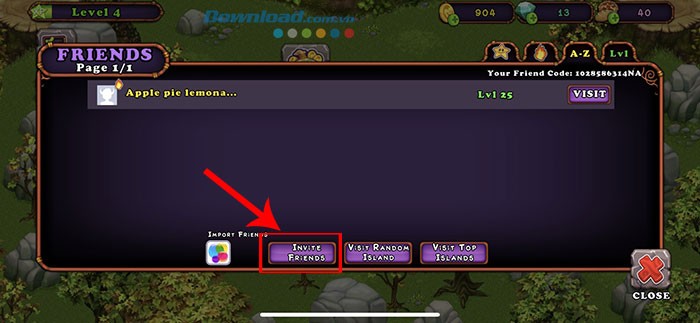 Tiếp theo, nhấn vào tùy chọn Invite Friends để tiến hành mời bạn bè.