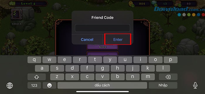 Nhập chính xác friend code mà bạn đã nhận được vào ô trống.