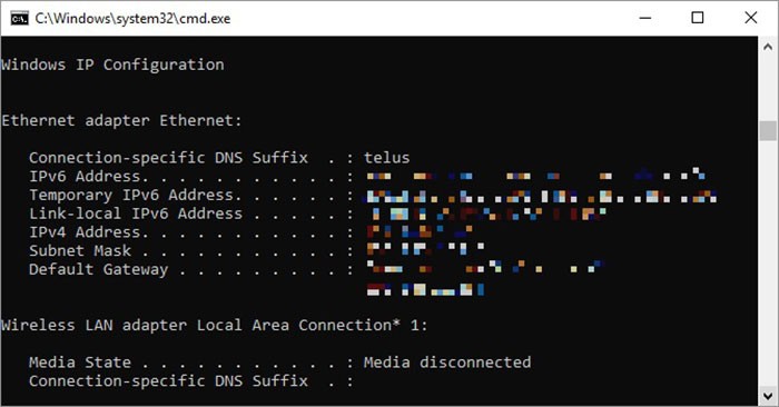 Lệnh này hiển thị địa chỉ IP mà máy tính hiện đang sử dụng. Ipconfig trở nên hữu ích nhờ các tùy chọn mở rộng của nó. Sử dụng ipconfig /release, sau đó ipconfig /renew có thể buộc máy tính Windows yêu cầu một địa chỉ IP mới. Điều này đặc biệt hữu ích khi máy tính được gán một địa chỉ không khả dụng. Người dùng cũng có thể sử dụng ipconfig /flushdns để làm mới địa chỉ DNS của mình. Các lệnh này rất hữu ích khi trình khắc phục sự cố mạng Windows gặp sự cố.
