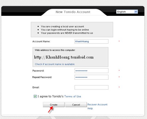 Lưu ý rằng một số chương trình tường lửa hoặc phần mềm diệt virus có thể chặn việc cài đặt này, tuy nhiên, Tonido hoàn toàn an toàn cho máy tính của bạn.