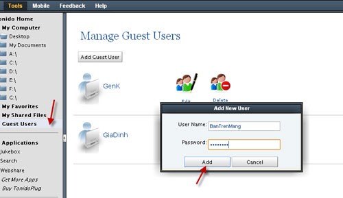 Ngoài chia sẻ công khai, Tonido còn cho phép bạn giới hạn quyền truy cập vào file của mình bằng cách tạo các nhóm người dùng riêng tư.