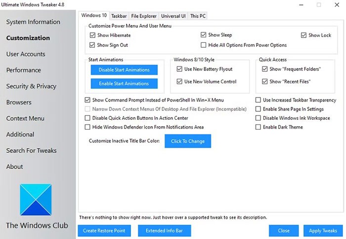 Khác với FixWin, vốn tập trung vào việc chẩn đoán và sửa chữa các sự cố của Windows, Ultimate Windows Tweaker cho phép người dùng điều chỉnh các thành phần của hệ điều hành một cách linh hoạt. Bạn có thể dễ dàng kích hoạt, vô hiệu hóa, ẩn hoặc loại bỏ các tính năng cụ thể.