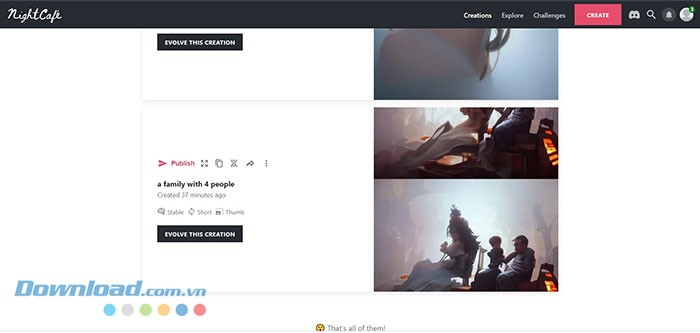 Tất cả các sáng tạo này đều được lưu trữ an toàn trong tài khoản Nightcafe của mỗi người dùng.